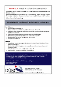 Mitarbeiter für den Bereich Materialwirtschaft (m/w/d)
